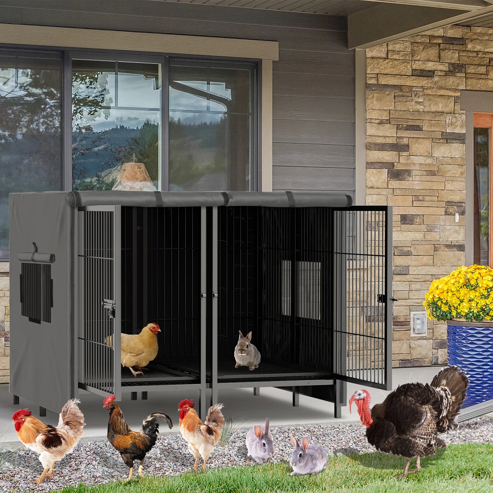 Heavy Duty Dog Crate: 52Inch Extra Large Pet Raised Metal Cage with Removable Divider - Doggy Kennel Training Playpen House